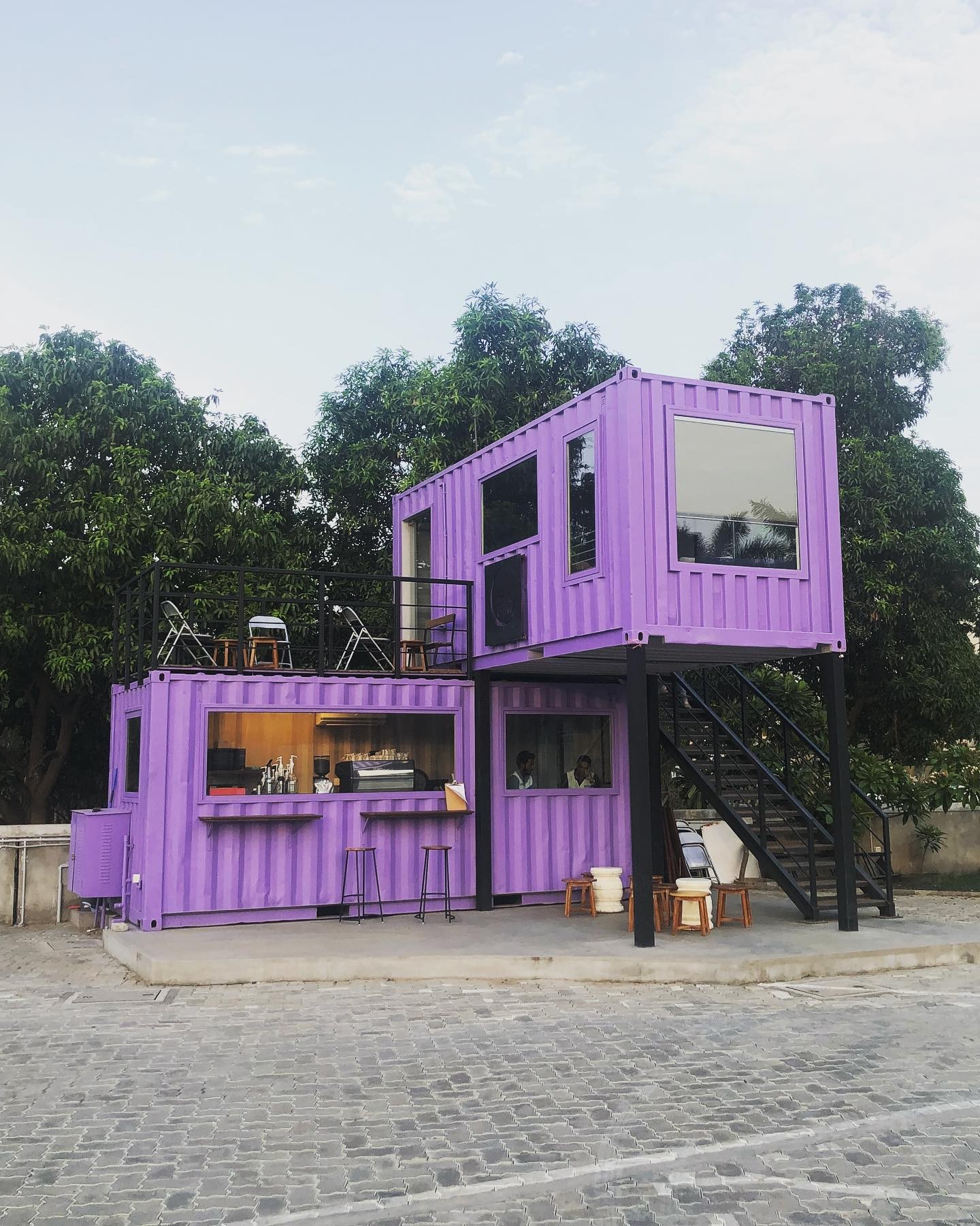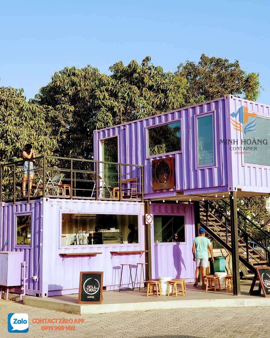 Container cafe 2 tầng lắp ghép 2x20 feet tím