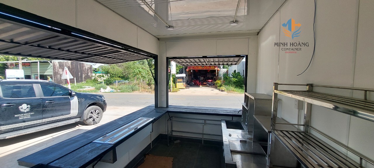 + Bên trong cont: Điện, đèn, quạt hút, máy lạnh, wc full thiết bị