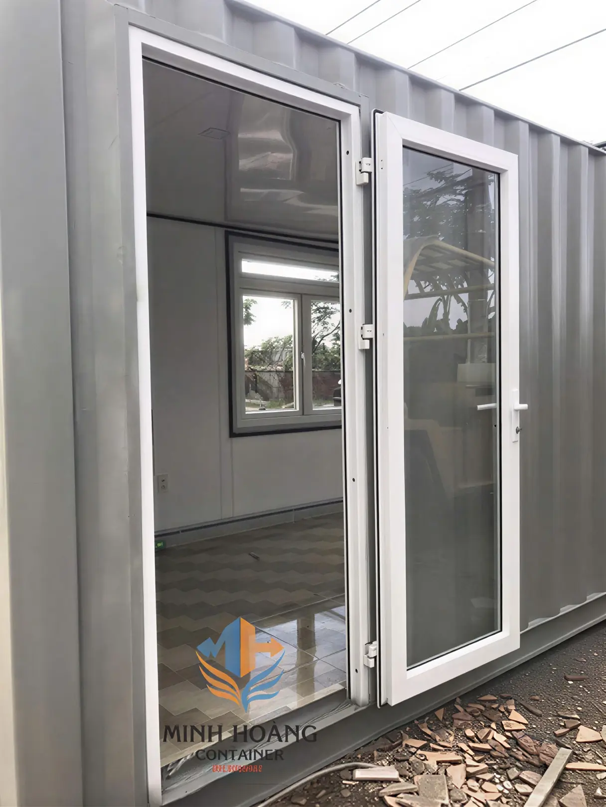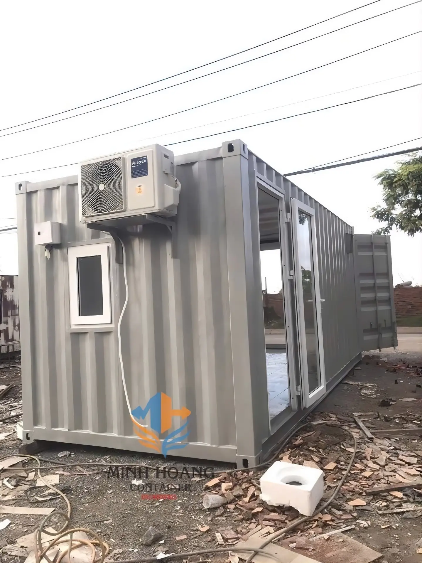 Sử dụng 1 container 20 feet, giá bán chưa bao gồm máy lạnh (Bao gồm sàn lát gạch, trang bị đi và cửa sổ hệ cửa nhôm XingFa cao cấp, gắn kính cường lực 8mm)