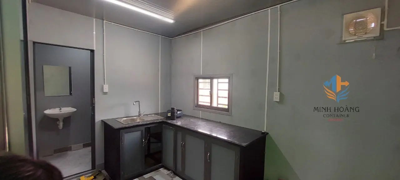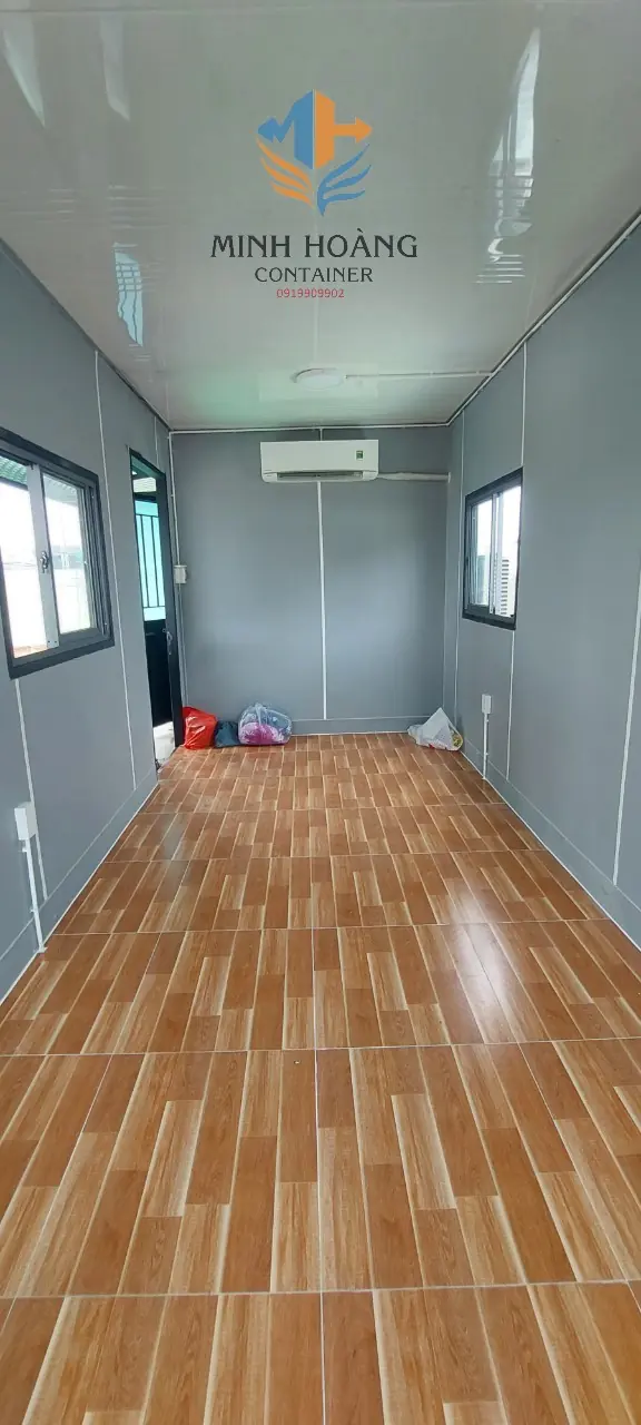 + Bên trong được ốp thêm tấm cemboard cách nhiệt và trang trí sàn lát gạch đầy đủ hệ thống điện đèn cửa đi cửa sổ.