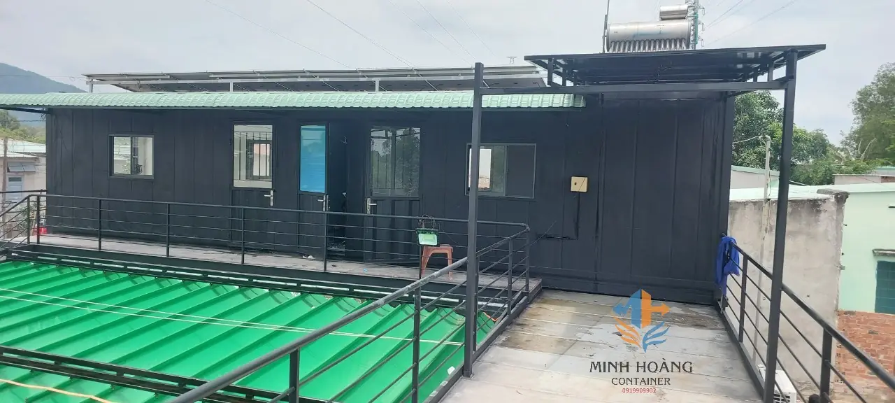 Container nhà ở lắp ghép 2 tầng 2x40 feet đen khung kính có toilet