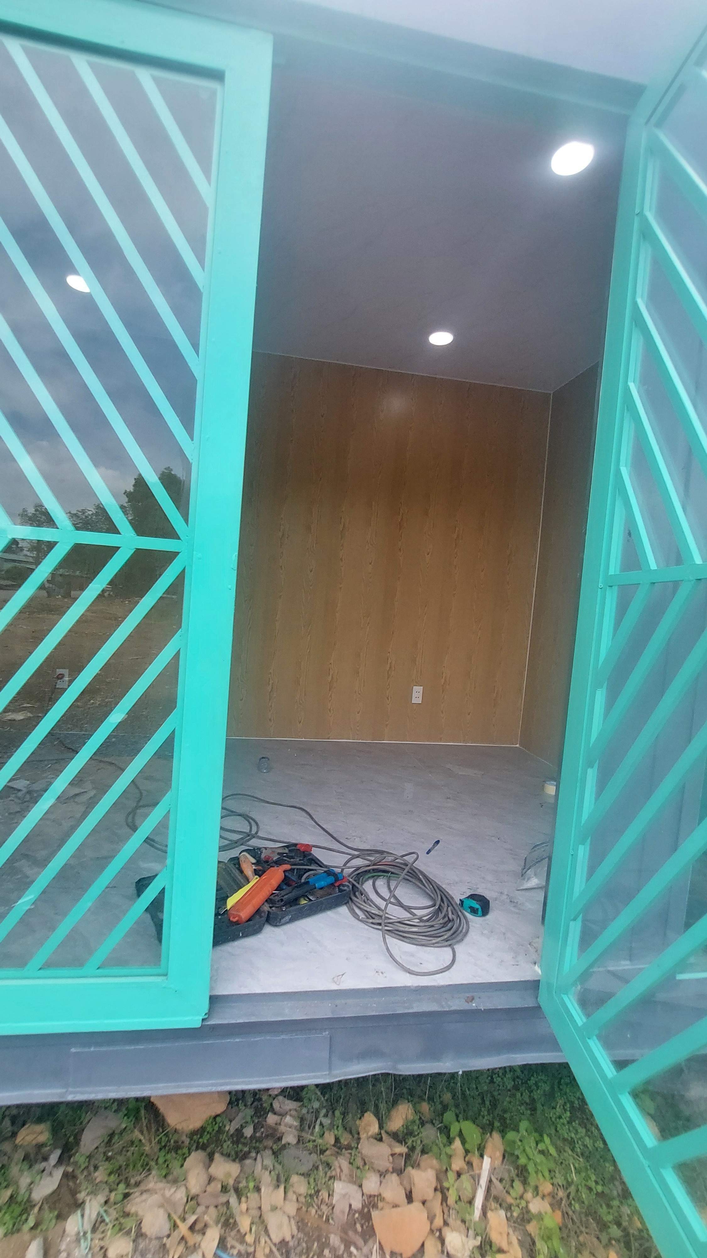+ Bên trong container: Trang bị đầy đủ thiết bị điện, đèn, hệ thống điện nước, quạt hút, máy lạnh, wc full tiện nghi